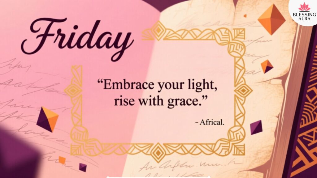 Friday Blessings Images And Quotes highlights joyful words like peace, gratitude, favor, and strength. These words lift your heart and help you welcome the day with calm confidence.
